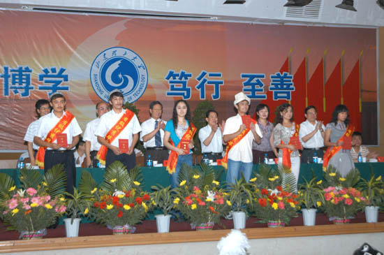 6月21日下午,我校2007届新疆民族师资班学生毕业典礼在3号教学楼报告厅隆重举行,167名带着希望和梦想、满载着收获和喜悦的新疆学子,今天,将从理工大学出发,开始人生新的旅程。新疆维吾尔自治区教育厅师资处、学生处负责人,校领导都光珍、张新义、谭秀森、杜瑞成及有关部门、学院负责人出席毕业典礼。