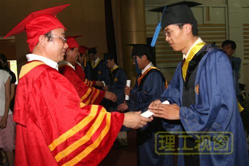 188名获得硕士学位的毕业生依次上台,校学位评定委员会主席张新义教授,副校长、博士生导师王学真教授,校学位评定委员会副主席杜瑞成教授、姚德教授为他们一一颁发硕士学位证书。