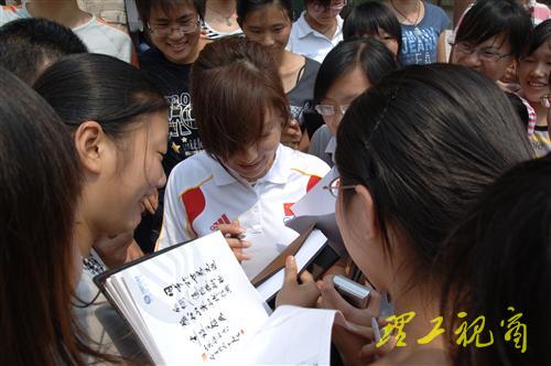 材料科学与工程学院2007级学生李乐代表全校广大学生向杜丽在北京奥运会上取得的优异成绩表示热烈的祝贺,表示在以后的学习生涯中要以杜丽为榜样,学习她热爱祖国、为国争光的高尚精神,树立远大志向,追求崇高目标,勤奋学习,刻苦钻研,大胆创新,深入实践,学好科学文化知识,练好报效祖国的本领,努力成长为祖国和人民需要的高素质创新型人才,将来为全面建设小康社会、为国家现代化建设事业做出应有的贡献。