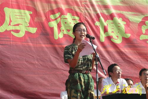 新生代表鲁雨洲怀着无比激动的心情表达了新同学对大学生活的憧憬,并为以后的人生能够与山东理工大学的脉搏相关而自豪,她表示要抓住军训这个锻炼自我、完善自我的机会,努力培养令行禁止的作风、奋勇拼搏的精神和坚韧不拔的意志,把人民解放军钢的意志、铁的纪律作为新同学最好的教材,使人民解放军的光荣传统和优良作风在新同学身上继承和发扬。