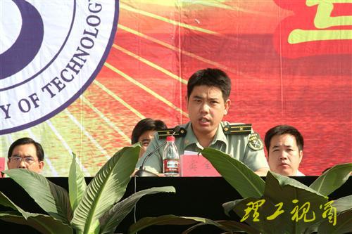 窦全然介绍了部队的光荣传统,强调了军训的重大意义,要求全体参训同学不怕困难,刻苦训练,增强纪律观念和国防观念,迈好大学第一步;要求全体承训官兵严格按照 “政治合格、军事过硬、作风优良、纪律严明、保障有力”的总目标,严格管理、科学实施,确保本届学生军训工作取得圆满成功。