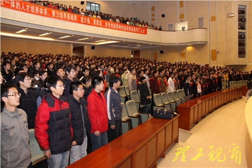 大会在庄严的国歌声中拉开帷幕。学生工作部负责人宣读了《山东理工大学关于表彰2007—2008年度学生先进集体、优秀个人的通报》和《关于表彰2008年度国家奖学金获奖学生的通报》。