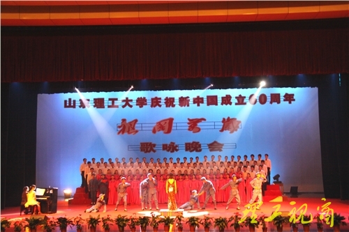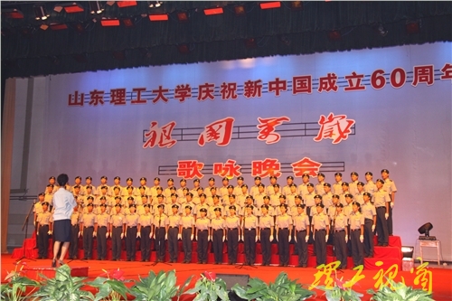 在举国欢庆新中国60华诞之际,我校举行以“歌颂伟大祖国,肩负神圣使命”为主题的庆祝新中国成立60周年“祖国万岁”歌咏比赛,旨在抒发师生员工的爱国情怀、歌颂我们伟大的祖国、凝聚理工精神。此次歌咏比赛由校工会主办,音乐学院、后勤管理处协办。各基层分工会积极响应,主要负责人亲自组织并带头参加排练和演出,广大师生热情高涨,利用业余时间提前排练、积极组织参加比赛,用昂扬向上、开拓奋进的精神面貌向我们伟大的祖国献礼。音乐学院的师生积极帮助各代表队排练,部分学生承担了所有参赛代表队的指挥工作,付出了辛勤的劳动。