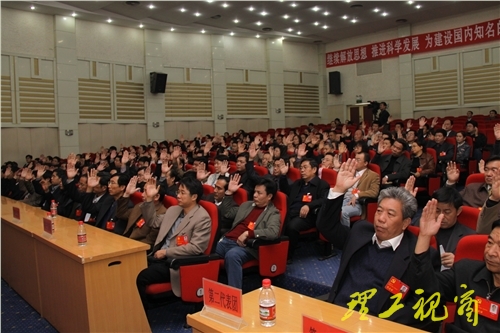 都光珍在讲话中指出,中国共产党山东理工大学第二次代表大会,经过全体代表的共同努力,圆满完成了大会预定的各项议程。大会高举中国特色社会主义理论伟大旗帜,以党的十七大精神和科学发展观为指导,实事求是地总结了第一次党代会以来学校各项工作取得的成绩,客观分析了当前面临的形势,提出了今后五年学校改革发展的目标和任务;全体代表认真审议报告,积极建言献策,正确行使权力,充分体现了广大代表和师生员工爱校兴校、共谋发展的强烈愿望;大会一致通过了上届党委的工作报告和纪委工作报告,选举产生了中国共产党山东理工大学第二届委员会和中国共产党山东理工大学纪律检查委员会,会议开得圆满成功!他代表大会主席团向全体代表和全体工作人员、服务人员表示敬意和感谢。他指出,新一届“两委”将不辜负各位代表和师生员工的希望,团结协作,开拓进取,紧紧依靠全校师生员工,努力推进学校各项事业不断实现新发展;全校各级党组织和全体共产党员要认真执行大会各项决议,团结带领广大师生员工继续解放思想,勇于改革创新,着力提升内涵,推进科学发展,为把山东理工大学早日建成国内知名的教学研究型大学而努力奋斗!