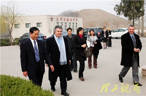 3月31日,英国威尔士大学三一圣大卫代表团一行5人,在校长麦德温.休斯带领下来我校考察访问。我校校长张新义、副校长姚德及有关部门、学院负责人与麦德温.休斯一行进行座谈,回顾了双方交往中取得的成绩,探讨了进一步合作的意愿及具体合作项目。