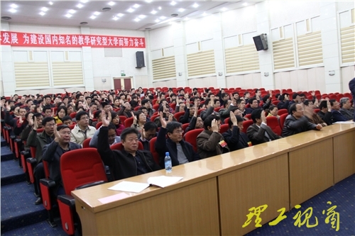 党委副书记、校长张新义在会上作了题为《解放思想 凝心聚力 积极作为 科学发展 全面推进国内知名的教学研究型大学建设进程》的报告。报告实事求是地回顾了学校第一届双代会以来的工作,充分肯定了取得的成绩,客观分析了存在的问题,明确提出了学校今后四年发展的总体目标、战略任务、工作任务和具体措施。