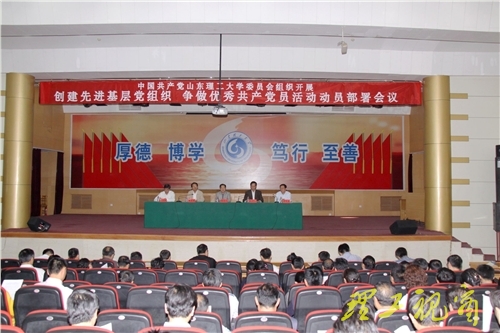 会上,党委副书记张宗新传达了《中共山东理工大学委员会关于在全校党的基层组织和党员中深入开展创先争优争做理工先锋活动的实施方案》,代表校党委对“创先争优”活动进行了部署。