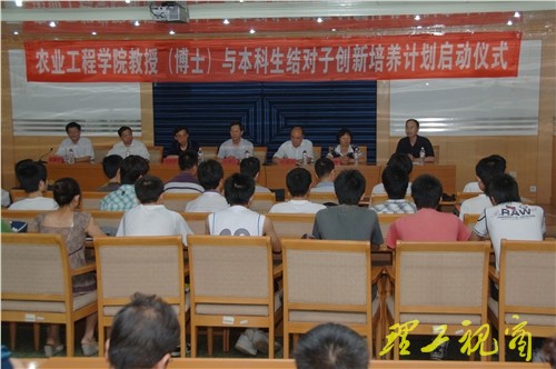 张新义在讲话中指出,我校从单一的以本科教育为中心到重视发展研究生教育,扩大研究生教育规模,再到现在博士学位授权建设单位,这些都离不开教育教学的改革,离不开人才培养质量的提高。他强调,学校的根本任务是培养人才,而核心标准就是创新型人才的培养。农业工程与食品科学学院教授(博士)与本科生结对子创新培养计划是学校本科生导师制的深化,是个性化人才培养模式的探索。学院要利用好这一平台,对本科生进行全方位的指导。学生在完成学业的同时,注重培养科研意识、创新意识。他希望学院在组织、领导等方面重视该项活动,扎扎实实地开展好此项活动,取得实效;希望教师把教学精华、治学精神、科研经验传导给学生;希望同学们利用好机会,注意在实践中发现问题、解决问题,培养自身的创新意识,在与导师学习交流的过程中提高自己的创新能力。