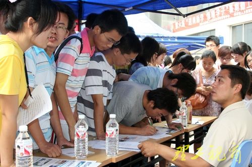 招聘现场人员爆满,共有2000多名学生前来应聘,当天上午共有800余名学生与用人单位达成意向。