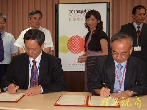 论坛期间,张新义分别与昆山科技大学校长苏炎坤先生、高雄大学校长黄英忠先生、义守大学校长傅胜利先生进行友好交谈,就建立长期的交流与合作关系达成一致意见,与昆山科技大学签订了“学术合作议定书”。