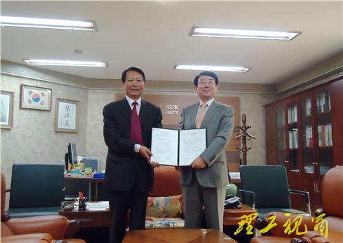 应韩国暻园大学与建国大学的邀请,校党委副书记张宗新率领我校代表团一行5人于10月14日赴韩国访问,近日圆满完成出访任务,顺利返校。 在暻园大学,代表团一行参观了该校的留学生宿舍和留学生服务中心,并于15日下午出席了暻园大学标志性建筑-梦幻大厦的落成典礼。暻园大学常务副校长黄仁庆与我校代表团进行了座谈交流,双方就今后的进一步交流与合作达成了一致意见。代表团还会见了在暻园大学学习的学生代表。 在建国大学,代表团一行受到了该校河胜美副校长等人的热列欢迎。双方在友好平等的气氛中举行了会谈,签署了建立友好合作关系协议,并就开展交换生项目进行了会谈。 此次访问延续和深化了我校与韩国暻园大学的友好合作关系,增加了新的友好合作院校,进一步提高了我校韩国友好学校的层次,对我校的国际化进程起到了良好的促进作用。 |