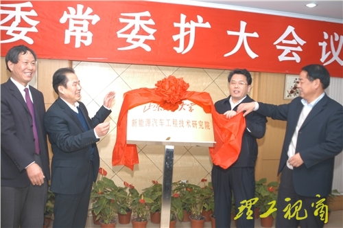 会上,刘慧晏、周清利与都光珍、张新义共同为新能源汽车工程技术研究院揭牌。会前,淄博市政府与我校签署了《合作发展框架协议》和《共建新能源汽车工程技术研究院合作协议》。