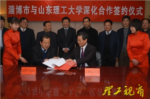 张新义介绍了我校博士学位授予单位立项建设情况。他说,学校把博士学位授予立项建设作为重中之重,按照国务院学位委员会有关要求和项目建设规划,进一步明确目标、分解任务、狠抓落实,提供政策支持,加强成果培育,多方筹措资金予以经费保障,取得了明显的成效,为顺利通过博士学位授予单位验收奠定了坚实基础。谈到与淄博市开展产学研合作情况,他说,学校秉承全方位服务地方的办学传统,发挥以工为主的多学科优势,主动对接淄博市经济社会发展战略,深入开展校地、校企合作,扎实推进产学研用结合,不断扩大服务社会空间,拓宽服务平台,增强服务能力,积极推进科学研究和成果转化,为区域创新体系建设和地方经济文化建设积极贡献力量。