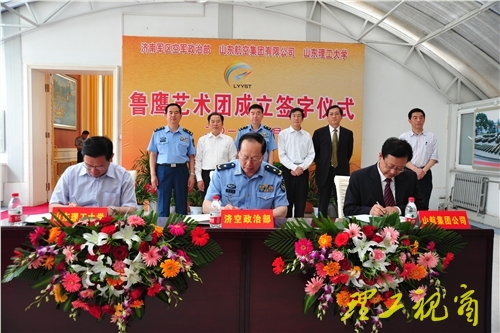 5月30日,我校与济南军区空军、山东航空集团有限公司在济南签署协议,联合组建鲁鹰艺术团。济南军区空军政委刘绍亮,副司令员吴辉建,政治部主任冯世平,山航集团董事长、总裁马崇贤,党委书记张幸福,我校党委书记都光珍、党委副书记谭秀森等出席成立仪式。 鲁鹰艺术团的成立是推进军民融合发展、深化军地文化共建进行的开创性尝试。根据合作备忘录要求,济空和山航每年安排山东理工大学专业创作人员体验生活、创作采风,结束时由创作人员为其创作优秀作品;学校则积极发挥自身优势,采取以演代训、插班学习、短期培训等方式,负责为济空和山航创作节目、培训骨干、提供艺术指导。三方每年根据各自工作安排需要,组织1至2次大型文艺演出,平时根据任务需要,适时组织专场慰问演出和基层巡演;同时,济空根据山航和学校需要,还将为学校和山航组织开展军训和国防教育。 据悉,鲁鹰艺术团采取“平时分散、用时集中、经常互动,资源共享、人才共育、保障共担”的合作模式,遵循坚持“正确方向、服务中心、双拥共建、精品战略、务实创新”的原则,通过创作健康向上、格调高雅的文艺作品为纽带,不断强化济南军区空军、山东航空、山东理工大学三方合作,振奋济空官兵、山航员工和学校师生精神,着力提升部队战斗力、企业核心竞争力和学校办学育人质量,实现共同发展、互利共赢。 |