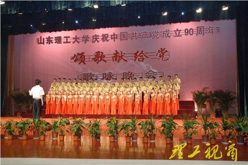 校党委副书记张宗新在致辞中说,中国共产党的90年历程,是光辉的90年,是伟大的90年。这90年,闪耀着中国共产党领导人民前赴后继、波澜壮阔的奋斗足迹;这90年,谱写了中华崛起、繁荣富强的华美乐章。90年的光辉历程,证明了一个真理:没有共产党,就没有新中国。在中国共产党成立90周年之际,我们举办“颂歌献给党”歌咏晚会,就是要通过传唱红色歌曲,弘扬革命传统,树立社会主义理想信念,抒发热爱伟大的党、热爱伟大祖国、热爱社会主义的豪情,唱响歌颂党、歌颂祖国、歌颂社会主义的时代主旋律。让我们放声歌唱,颂歌献给伟大的中国共产党。