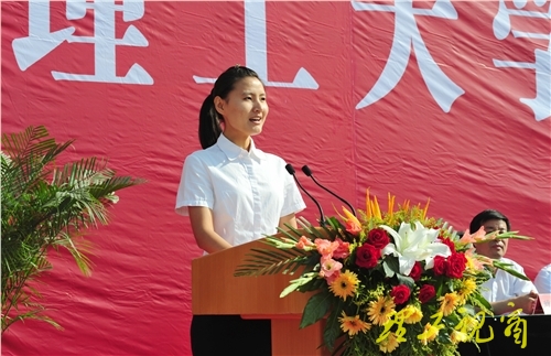 外国语学院2009级学生、国家励志奖学金获得者姬方明同学代表在校生发言,他希望学弟学妹要学会担当起家庭、学校、社会和时代赋予的责任,积极回报父母的养育之恩,做自豪的“理工大学人”,为社会发展贡献自己的力量,以自信和从容投身中华民族伟大复兴的历史进程中。