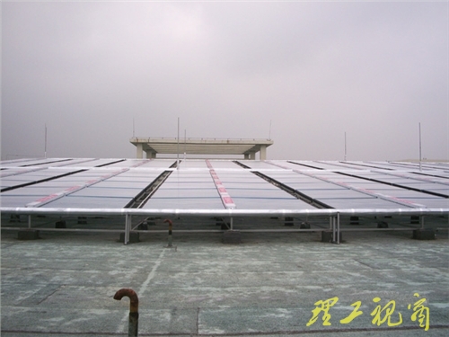 工程于2011年7月24日正式开工,8月25日投入运行,项目安装于第三食堂及第一浴室楼顶,造型美观,经济耐用,节能效果好。共安装太阳能集热器240组,太阳能真空管12000支,总集热面积1896平方米,冷热水管路1080米,共分四个大框架、六路循环系统、两套智能控制系统,总投资200万元。通过项目改造,采用太阳能清洁能源替代原有常规能源,经过一段时间的运行,经计算,项目日产热能708万千卡,相当于1.011吨标准煤释放的热量,热水转换能力总计120吨,按锅炉实际热利用率为80%计算,可实现年节约标准煤480吨,减少二氧化碳排放量1257.6吨,减少二氧化硫排放量4.08吨、氮氧化物3.56吨,每年可节约资金40余万元。