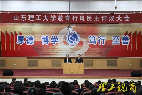 10月20日,山东省高校教育行风民主评议工作检查组来我校检查指导工作。党委副书记、校长张新义,党委常委、副校长杜瑞成,校长助理邹广德及相关职能部门负责人参加了评议工作情况汇报会。