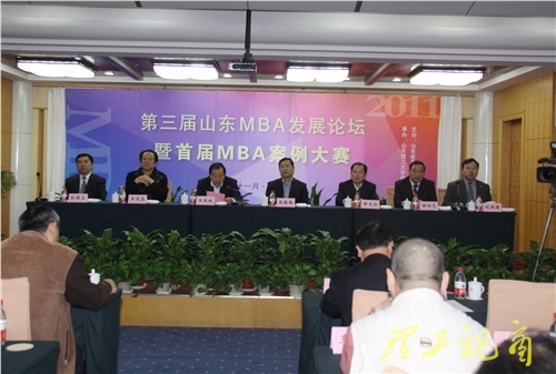 11月4日-5日,由山东省MBA教育指导委员会主办,我校商学院、MBA教育中心承办的第三届山东MBA发展论坛暨首届MBA案例大赛在我校杏园北楼西二层会议室举行,全国MBA教育指导委员会委员、大连理工大学经济与管理学部部长苏敬勤,淄博市委常委、常务副市长王顶岐,我校党委书记都光珍,党委常委、副校长王学真,山东省MBA教育指导委员会主任委员、山东大学管理学院院长、MBA/EMBA教育中心主任徐向艺,中国海洋大学管理学院院长、MBA教育中心主任权锡鉴出席会议,山东省各MBA培养院校的经管(商)学院院长、MBA教育中心主任、教师代表、MBA联合会主席和学生代表100余人参加会议。山东大学管理学院副院长、MBA/EMBA教育中心副主任刘洪渭主持会议。