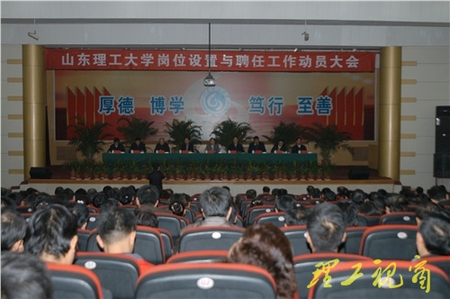 11月17日下午,学校召开全校岗位设置与聘用工作动员大会。校领导都光珍、张新义、张宗新、张元利、杜瑞成、张宇声、衣玉琛、吕传毅,校长助理邹广德出席会议,校学术委员会、各学院教授委员会成员,系部(教研室)主任,副处级以上干部、教授参加会议。党委书记都光珍主持会议。