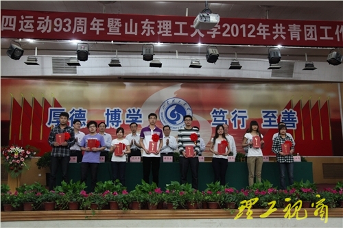 为纪念“五四”爱国运动93周年和中国共青团建团90周年,5月2日下午,我校纪念五四运动93周年暨2012年共青团工作表彰大会在三号教学楼报告厅召开。校党委副书记谭秀森,党委组织部、宣传部、学生工作部、工会、校团委相关负责人,各学院(部)团总支成员,受表彰的集体和个人代表及部分团员代表参加了大会。