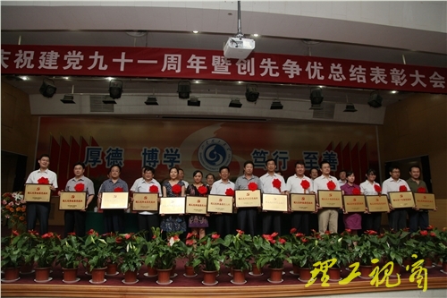 党委副书记谭秀森宣读了受上级党组织表彰的先锋基层党组织、党员名单和校党委关于表彰理工先锋基层党组织、理工先锋共产党员的决定。在热烈的掌声中,与会领导为先进集体和个人代表颁发了奖牌和证书。