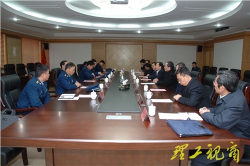 3月22日,济南军区空军政治部主任卫明一行来校调研国防生培养工作,校领导都光珍、张新义、谭秀森及有关部门负责人与卫明一行进行了座谈。