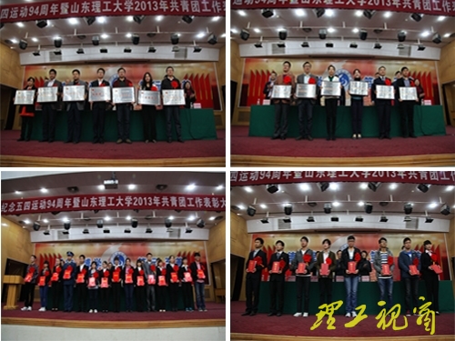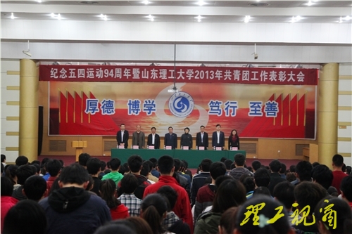 5月3日下午,纪念五四运动94周年暨2013年共青团工作表彰大会在三号教学楼报告厅召开。校党委副书记谭秀森,党委组织部、宣传部、学生工作部、工会、校团委负责人,各学院团总支成员,受表彰的集体和个人代表及部分团员代表参加了大会。