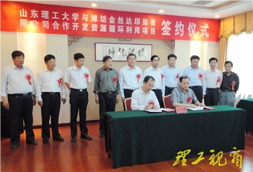 5月17日,我校与潍坊金丝达印染有限公司科技合作项目签约仪式在潍坊金丝达印染有限公司举行。副校长吕传毅,昌邑市政法委书记刘杰然,副市长李明杰,潍坊金丝达印染有限公司董事长、总经理刘国田出席会议,我校科技处、电气与电子工程学院有关负责人和部分教授代表参加了签约仪式。 仪式上,吕传毅简要介绍了我校的总体情况,希望校地、校企双方通过加强合作,充分利用学校的科研、人才、仪器设备等方面的优势和企业的资金优势与技术需求,相互促进、互惠互利、共同发展,为推进地方经济发展做出积极贡献。 科技处负责人与潍坊金丝达印染有限公司代表双方签定校企科技合作协议书,项目总研究经费1000万元,此项目将对催化剂器外再生生产资源循环利用技术及成套设备展开研究开发。 |