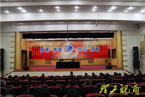 1月9日下午,学校在3号教学楼报告厅召开处级干部会,通报本次干部换届聘任工作的基本情况,对做好教育实践活动整改落实、建章立制环节工作提出了要求,并就寒假前和寒假期间相关工作进行了安排部署。校领导都光珍、张新义、张元利、王学真、杜瑞成、张宇声、衣玉琛、张业赏出席会议。会议由党委副书记、校长张新义主持。全体处级干部参加会议。 会上,党委书记都光珍对本次处级干部换届聘任工作的基本情况进行了通报。他指出,这次处级干部换届聘任工作时间紧、任务重、要求高,整个工作认真贯彻十八届三中全会和全国组织工作会议精神,以优化班子结构、促进干部交流、增强队伍活力为重点,历时近40天,顺利圆满完成。这次干部换届调整,加大了岗位交流的力度;一批年轻干部得到了提拔任用;一批博士被选拔充实到教学科研管理岗位;更加重视学院的班子配备;坚持民主推荐与竞争性选拔相结合,选任方式更加科学,保证了干部选任的质量。围绕新一届处级领导班子和干部履好职、尽好责,他希望,一要勤于学习,担负起新的使命和责任;二要勇于担当,不辜负党委和广大教职工的信任和期待;三要服务师生,牢固树立服务意识,淡化“当领导”观念,身体力行为师生服好务;四要廉洁自律,严格遵守廉洁从政规定,堂堂正正做人,清清白白做事,干干净净履职;五要增强共事意识,认真贯彻民主集中制,互相加强沟通交流。 都光珍还就做好党的群众路线教育实践活动整改落实、建章立制环节工作提出了要求。 张新义在主持会议时指出,目前学校处在由教学型向教学研究型转变的新的发展时期,本届中层干部肩负着建设教学研究型大学开路者的历史责任,希望大家一定要不辱使命,团结一致,勇于进取,在学校新的发展历史时期建功立业,共同实现学校发展的战略目标和任务。张新义还对寒假前及寒假期间学校部分重点工作作了安排部署。 |