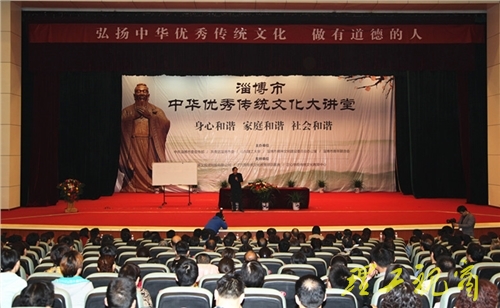 4月25日上午,由淄博市委宣传部、团市委、山东理工大学、市文明办、淄博市青年联合会共同举办的淄博市“中华优秀传统文化大讲堂”在我校大学生艺术中心隆重开幕,淄博市委常委、宣传部长郭利民,我校党委书记都光珍出席开幕式。 开幕式现场,来自社会各界的机关干部、团员青年、大学生、媒体记者等1500名中华优秀传统文化爱好者聆听了山东电视台《天下父母》栏目总导演吕明晰的首场演讲。他将儒家文化和现代生活相结合,将道德文化中“道”与“德”具体解析,展开了“实现中国梦、从孝道做起”的主题演讲,现场精彩纷呈、气氛热烈,不时响起阵阵掌声,现场听众深受教育和感染。 本次大讲堂旨在践行社会主义核心价值观,弘扬中华优秀传统文化,倡导社会主义道德风尚,推动全市“四德”工程的深入开展,切实提高市民文明素质和城市整体文明程度,促进公民身心和谐、家庭和谐、社会和谐,为加快经济文化强市建设提供道德支撑。 大讲堂邀请了吕明晰、傅冲、张发等7位多年来致力于弘扬传播中华优秀传统文化、在全国有很高知名度和影响力的专家学者前来授课,他们将在25日至27日的三天里,围绕“孝”文化、建立健康向上的人生态度、践行中华传统美德等主题,在多年来潜心研究的基础上,结合自己亲身经历和感人事迹,对中华优秀传统文化进行深入浅出的讲解,让广大市民切实感受传统文化的魅力。 |