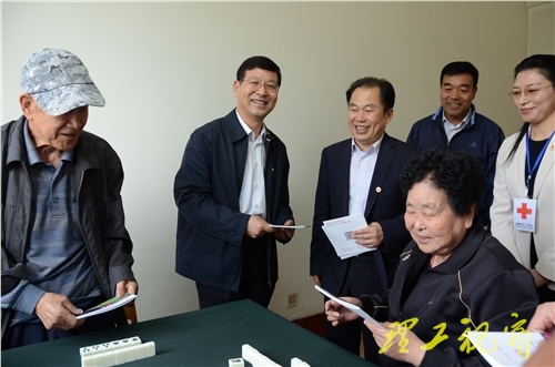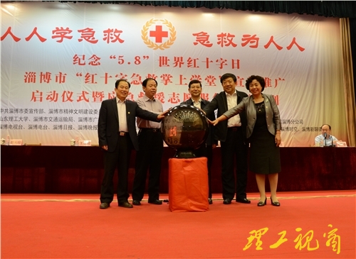 5月8日下午,以“人人学急救 急救为人人”为主题的淄博市“红十字急救掌上学堂”宣传推广启动仪式在我校举行。市委副书记周连华,市委常委、宣传部部长郭利民,市人大副主任王法亮,市政协副主席李敏,我校党委书记都光珍、副校长张宇声出席仪式。 启动仪式上,领导嘉宾及与会者共同观看了“红十字急救掌上学堂”公益宣传片;市委常委、宣传部部长郭利民为淄博市红十字心理救援志愿服务队进行了授旗。市委副书记周连华发表讲话,强调要深刻理解和弘扬红十字精神,引导社会各界传承美德、践行奉献,促进社会更加安全、更加和谐、更加文明、更加美好。 启动仪式结束后,都光珍、张宇声与市领导到离退休活动中心、逸夫图书馆为老师和学生发放了“红十字急救掌上学堂”日常急救手册等急救宣传资料,推动“红十字急救掌上学堂”六进(进机关、进学校、进乡村、进社区、进企业、进军营)活动。 |