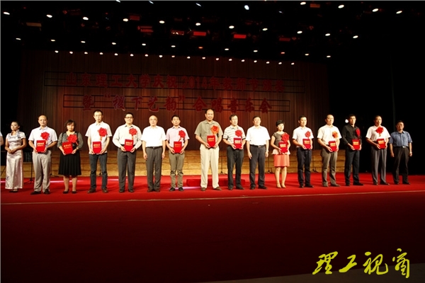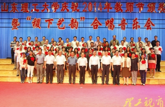 颁奖和音乐会穿插进行,在热烈的掌声中,吕传毅、胡兴禹、刘国华、张祥云为优秀教育工作者代表颁奖;张宇声、衣玉琛、杜瑞成为优秀教师代表颁奖;校党委书记都光珍、校长张新义为全国优秀教师获得者、马克思主义学院教师王环和振兴淄博劳动奖章获得者、电气与电子工程学院教师李震梅颁奖。王环代表获奖者发表了获奖感言,她说,学生的肯定是对老师最大的鼓励,作为一名老师,认真上好每堂课是应尽的职责,自己将珍惜这份荣誉,恪尽职守,做学生的良师益友。
