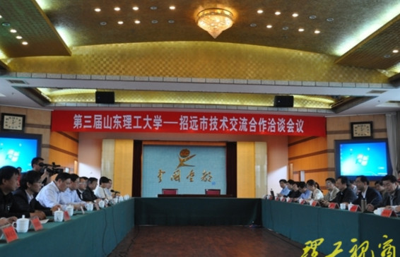 我校副校长王学真、科技处负责人、有关学院专家教授等19人和招远市有关部门和企业代表50余人参加洽谈会。
