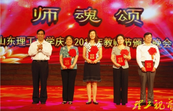 山东省教学名师获得者曲建忠教授代表获奖教工发表了获奖感言,她感谢学校和师生的信任和鼓励,表示,我们将不断提升和完善自我,投入更多教育情感,勇于承担学校的改革和发展任务,为培养“有社会责任、有创新精神、有专门知识、有实践能力、有健康身心”的社会主义建设者和接班人贡献更多的力量。
