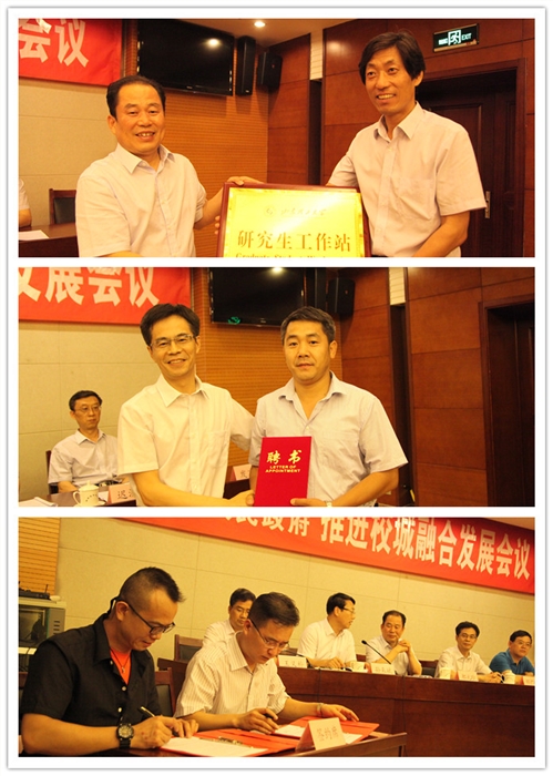 会上,都光珍为6个企业研究生工作站授牌;邹广德为企业指导老师颁发聘书;部分专家教授与企业代表签订产学研项目合作协议。