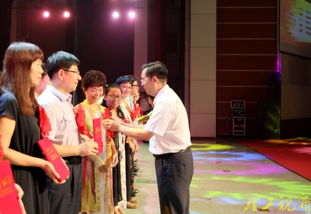 校领导吕传毅、张铁柱、衣玉琛、胡兴禹、刘国华、王立斌、魏修亭、易维明出席晚会,和广大师生共同观看了精彩的演出,并为受表彰的教职工代表颁奖。