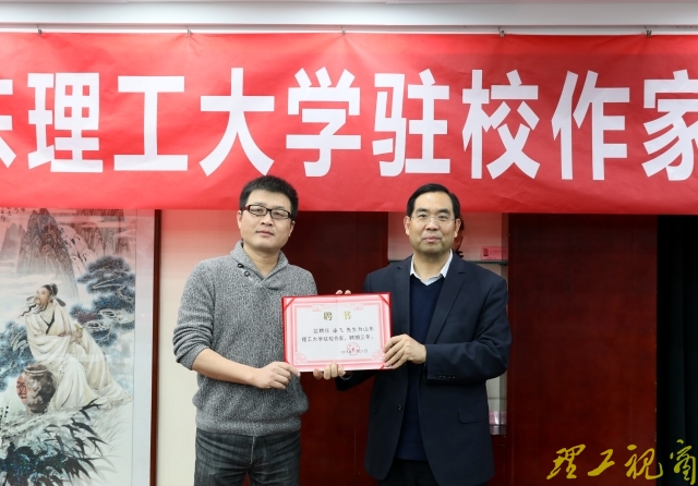 校党委书记吕传毅为受聘作家颁发聘书。党委常委、副校长刘国华,《淄博晚报》副总编辑郝永勃出席仪式。教务处、社会科学处、学生工作处、校团委及文学与新闻传播学院负责人、师生代表参加仪式。