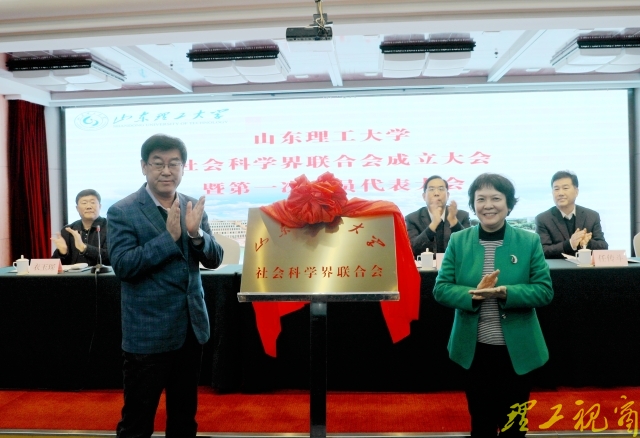 孙淑娜和杜福共同为“山东理工大学社会科学界联合会”揭牌。