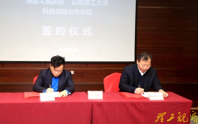 12月27日,山东理工大学与沛县战略合作协议签约及学校沛县技术转移转化中心揭牌仪式在徐州市沛县举行。校党委副书记衣玉琛,沛县县委副书记、县长吴卫东,县委常委、组织部长张磊,副县长辛传坤、徐刚出席仪式,沛县相关部门、我校服务地方办公室负责人及部分学院专家教授参加仪式。