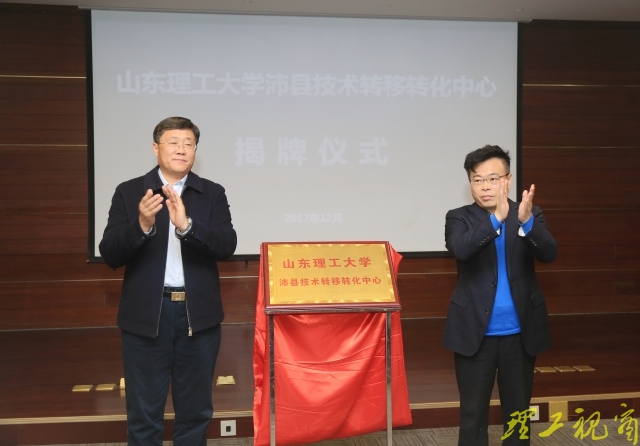 衣玉琛、辛传坤共同为山东理工大学沛县技术转移中心揭牌。