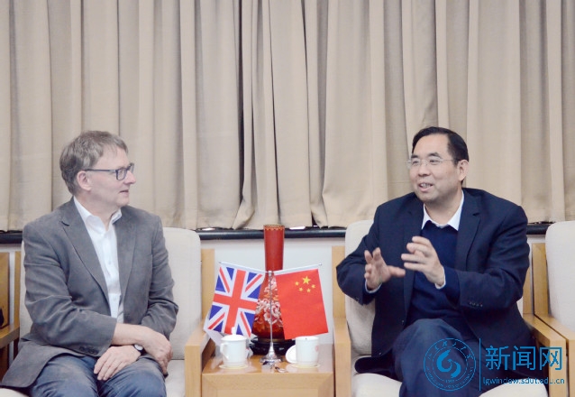 吕传毅代表山东理工大学对凯文·莫尔一行的到来表示欢迎,他简要介绍了学校的办学历史和发展现状,重点介绍了学科专业设置、优势特色学科、重大科研成果和近期学校改革发展取得的主要成绩等。他希望凯文一行多了解山东理工大学,以后常来访问学校,进一步探讨合作方式,拓展沟通渠道,促进中英两国间的交流合作及文化交融。