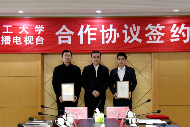 王旭对山东理工大学近年来的快速发展及良好社会影响力给予高度评价。他简要介绍了淄博市广播电视台当前的发展情况、面临的主要困难和今后的发展重点。他表示,山理工为淄博市提供了最强的智库、最好的平台、最优的人力储备,我们要倍加珍惜来之不易的合作机遇,与山理工携手奋进,不断探索合作载体,将协议内容尽早落地落实,实现共建、共享、共荣,书写合作共赢新篇章。