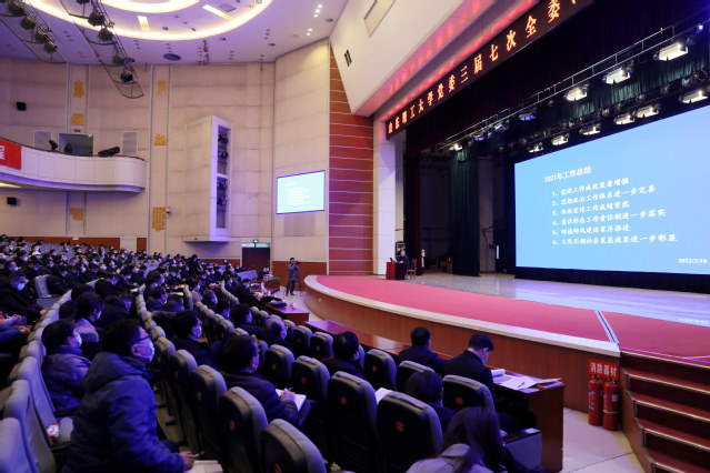 2月18日上午,学校在大学生艺术中心礼堂召开党委三届七次全委(扩大)会议,全面总结2021年度工作,系统谋划部署2022年度工作,紧盯目标、狠抓落实,确保学校各项决策落地见效,推动各项事业又好又快发展,以优异成绩迎接党的二十大胜利召开。