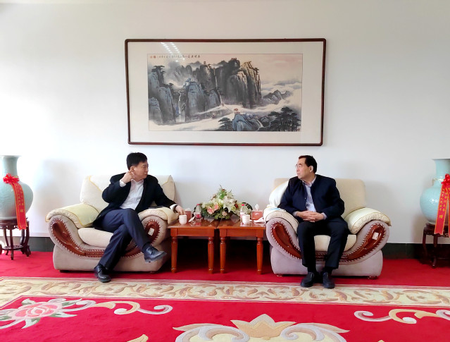 2月23日上午,张店区委书记郭庆,区委副书记、区长苏振华,带领张店区委、区政府领导班子部分成员、相关部门负责人来校就校城融合发展工作进行交流。校党委书记吕传毅在鸿远楼八楼接待室会见了郭庆一行。