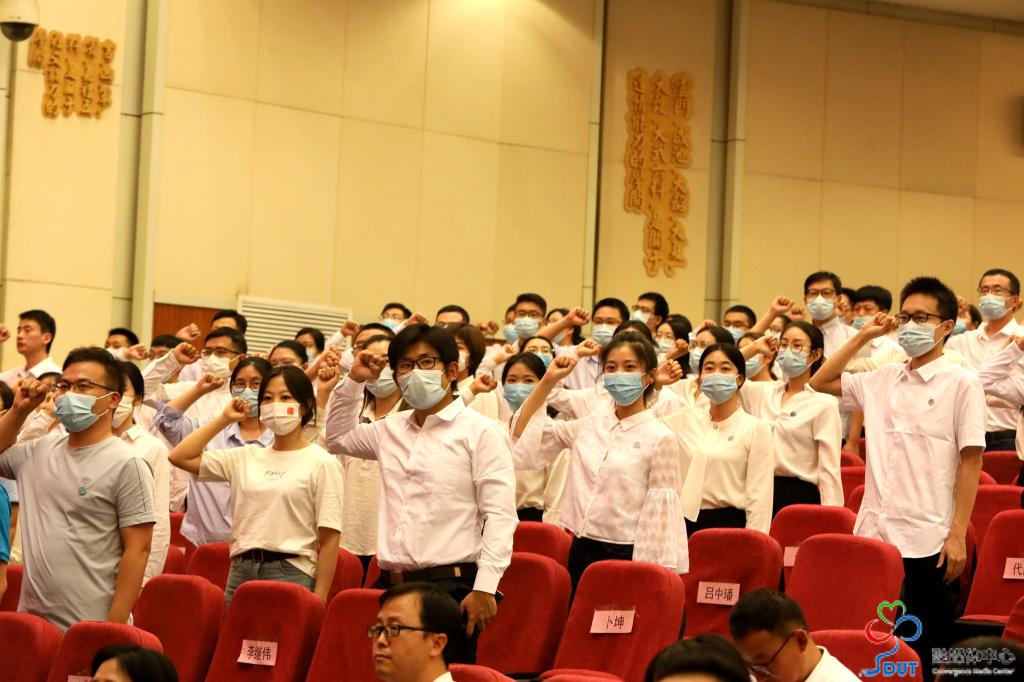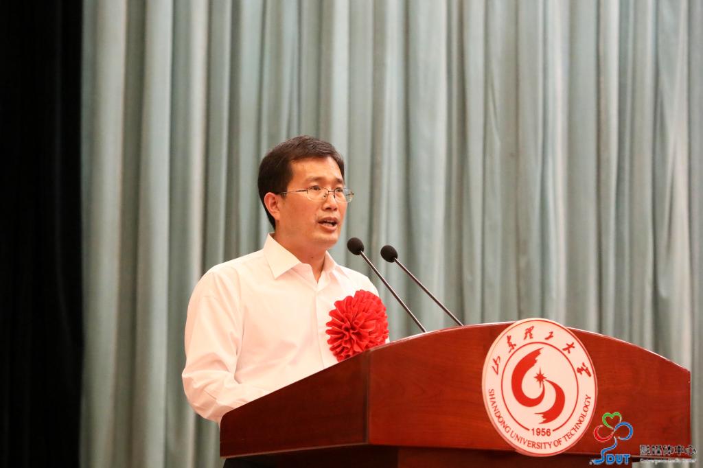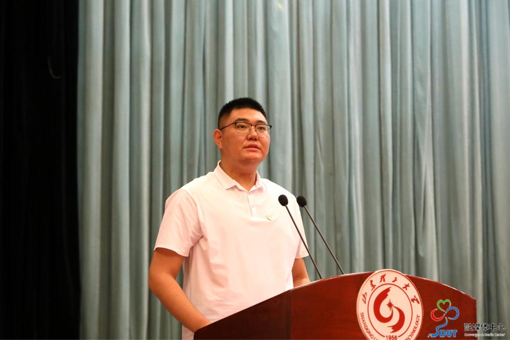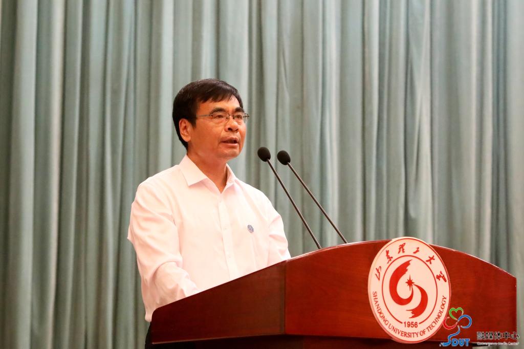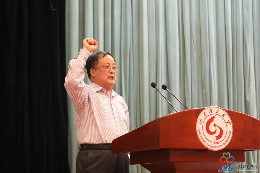 全国师德标兵、山东省高校首届教书育人楷模,机械工程学院赵庆志带领新入职教师宣誓:我志愿成为一名人民教师,忠诚党的教育事业,遵守教育法律法规,履行教书育人职责,引领学生健康成长,做到有理想信念、有道德情操、有扎实学识、有仁爱之心,为教育发展、国家繁荣和民族振兴努力奋斗。