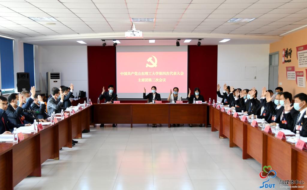 9月13日下午3:20,中国共产党山东理工大学第四次代表大会主席团第三次会议在大学生艺术中心222室举行。胡兴禹同志主持会议,主席团成员参加会议。