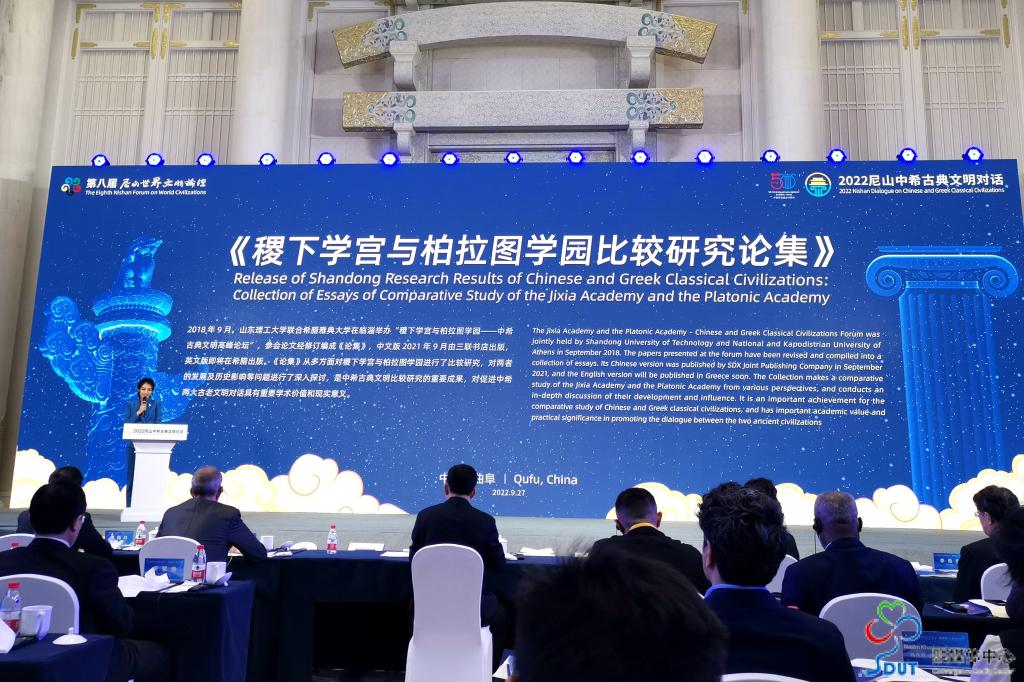 李玉霞出席我校作为承办单位之一的以“溯源与展望:文明的由来与未来”为主题的尼山中希古典文明对话会。对话会上,我校与希腊雅典大学共同推动出版的《稷下学宫与柏拉图学园比较研究论集》,作为山东省中希古典文明研究重要成果正式发布。来自中国、希腊、埃及、印度、伊朗、秘鲁等国30余位知名专家学者围绕“世界文明视野下的中希古典文明之路”“轴心文明时代的哲人与社会”“文明互鉴理念下的中西文化交流与创新”和“文明对话与世界文明的未来”等议题,进行了交流分享。山东省政协原副主席、我校特聘教授、教育部重大课题首席专家王志民作了题为“世界教育史上的双子星座--稷下学宫与柏拉图学园比较论纲”的交流发言,巩曰国等其他5位齐文化专家分别提交了会议论文,编入本次对话会论文集。