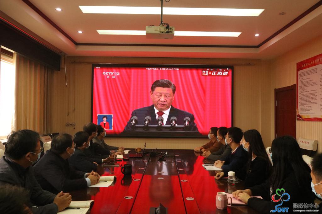 10月16日上午10时,举世瞩目的中国共产党第二十次全国代表大会在北京人民大会堂隆重开幕,习近平总书记代表十九届中央委员会向大会作了题为《高举中国特色社会主义伟大旗帜 为全面建设社会主义现代化国家而团结奋斗》的报告。全校师生员工怀着激动的心情认真收听收看了党的二十大开幕盛况,校领导在鸿远楼九楼会议室通过电视集体观看了开幕会直播,机关党员干部代表,各院(系)级单位中层干部、党员代表,团干部、学生干部代表等分别在会议室、党员活动室等地集中收看,其他人员通过电视、网络、广播以及新媒体等形式,即时收听收看开幕盛况。