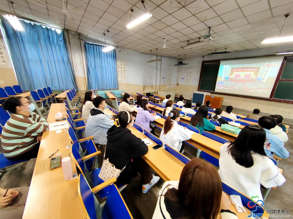 直播结束后,校党委书记胡兴禹作了讲话。他说,党的二十大,是在全党全国各族人民迈上全面建设社会主义现代化国家新征程、向第二个百年奋斗目标进军的关键时刻召开的一次十分重要的大会。会上,习近平总书记代表第十九届中央委员会作了报告,系统总结了十九大以来5年和新时代以来10年党和国家取得的伟大成就和伟大变革,科学谋划了未来5年乃至更长时期党和国家事业发展的目标任务和大政方针,提出了一系列新思路、新举措、新战略,系统回答了党在新征程上举什么旗、走什么路、以什么样的精神状态、朝着什么样的目标继续前进等一系列重大理论问题和实践问题。报告主题鲜明、总揽全局,内涵丰富、思想深邃,振奋人心、催人奋进,是一部通篇闪耀着马克思主义光辉的纲领性文件,是新时代新征程坚持和发展中国特色社会主义、全面建成社会主义现代化国家、实现中华民族伟大复兴中国梦的政治宣言和行动指南,对团结和激励全党全国各族人民夺取中国特色社会主义胜利而奋斗,具有十分重要的意义。